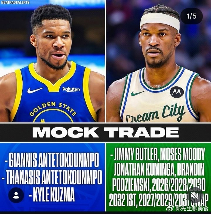美媒模拟了一笔勇士与雄鹿之间的重磅3换11交易,根据模拟方案,勇士将通过交易得到雄鹿核心字母哥、字母哥哥以及库兹马,而雄鹿则将收获巴特勒、穆迪、库明加、波杰姆斯基四名球员,外加2026至2032年间的四个首轮签,以及2027、2029、2031年三个首轮互换权。